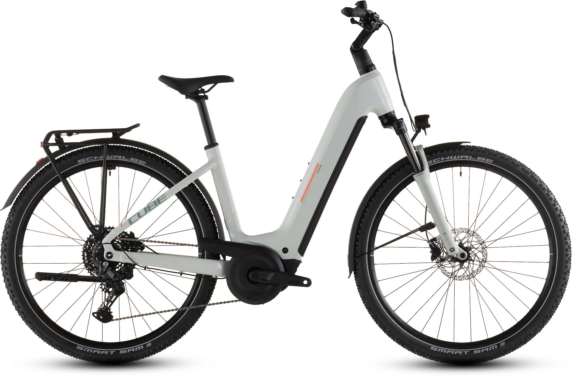 NURIDE HYBRIDDie ultimative Freiheit auf zwei Rädern? Beim Nuride Hybrid Performance 600 ist dieses Gefühl quasi inklusive! Dank seinem robusten Design und praktischen Zubehör schafft dieser Abenteurer unvergessliche Erlebnisse auf Tour. Für ein superkomfortables Fahrgefühl selbst auf holprigen Strecken haben wir ihm eine Federgabel und breite, griffige Schwalbe Reifen gegeben. Für Sicherheit und Kontrolle bei jedem Wetter sorgen die leistungsstarken Shimano Scheibenbremsen. On top gibt's ein Zubehörset, bestehend aus Gepäckträger, Schutzblechen, Beleuchtung und Seitenständer – so ist dieses Bike allzeit bereit für alles, was ansteht. Das Highlight ist jedoch der kraftvolle Bosch Performance Motor mit 600 Wh Akku, der mit der einfach bedienbaren Shimano 10-Gang Cues Schaltung Hand in Hand arbeitet. Damit werden jede Route und jeder Anstieg zum Spaziergang!