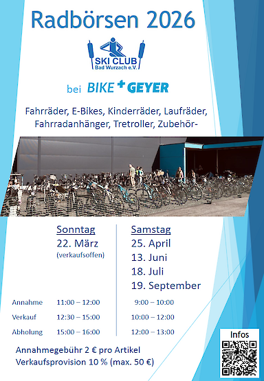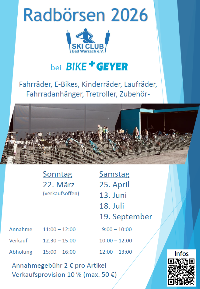 Der Skiclub Bad Wurzach veranstaltet am Sonntag 22.03.2025 bei uns einen Gebrauchtradbasar.