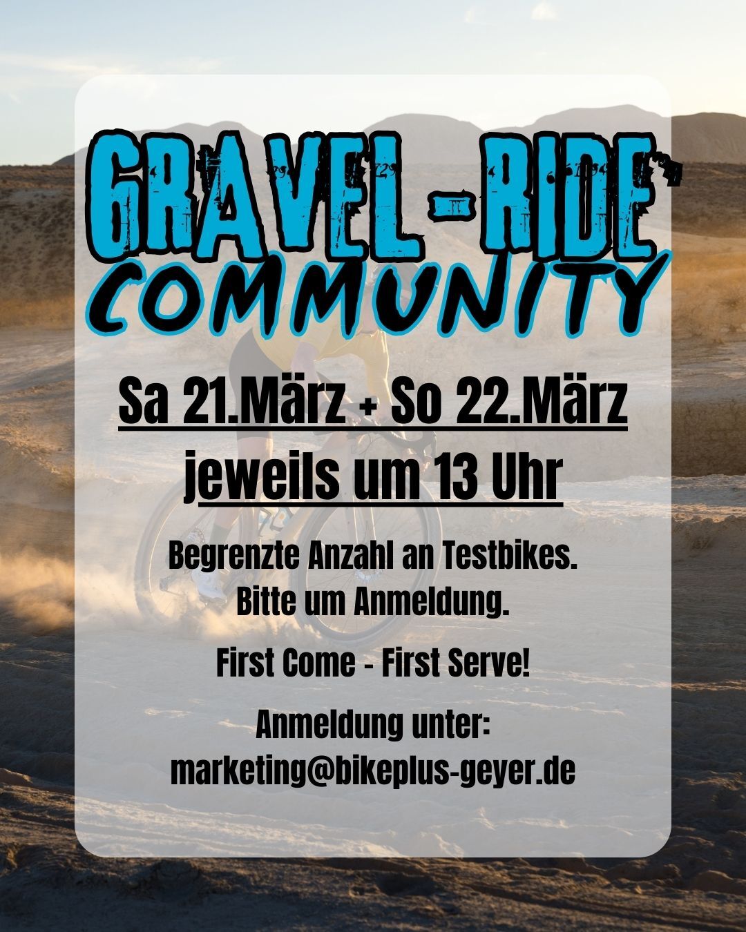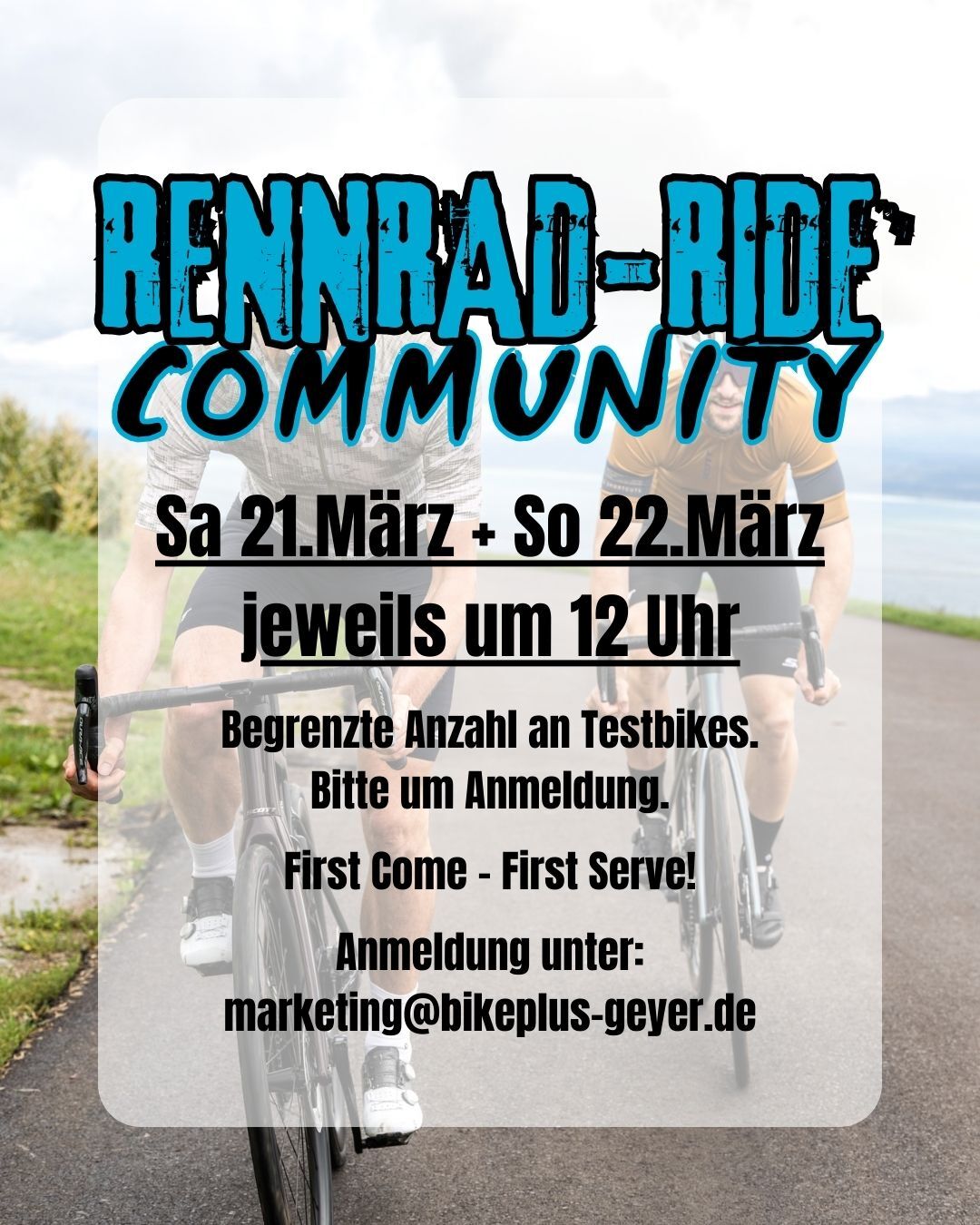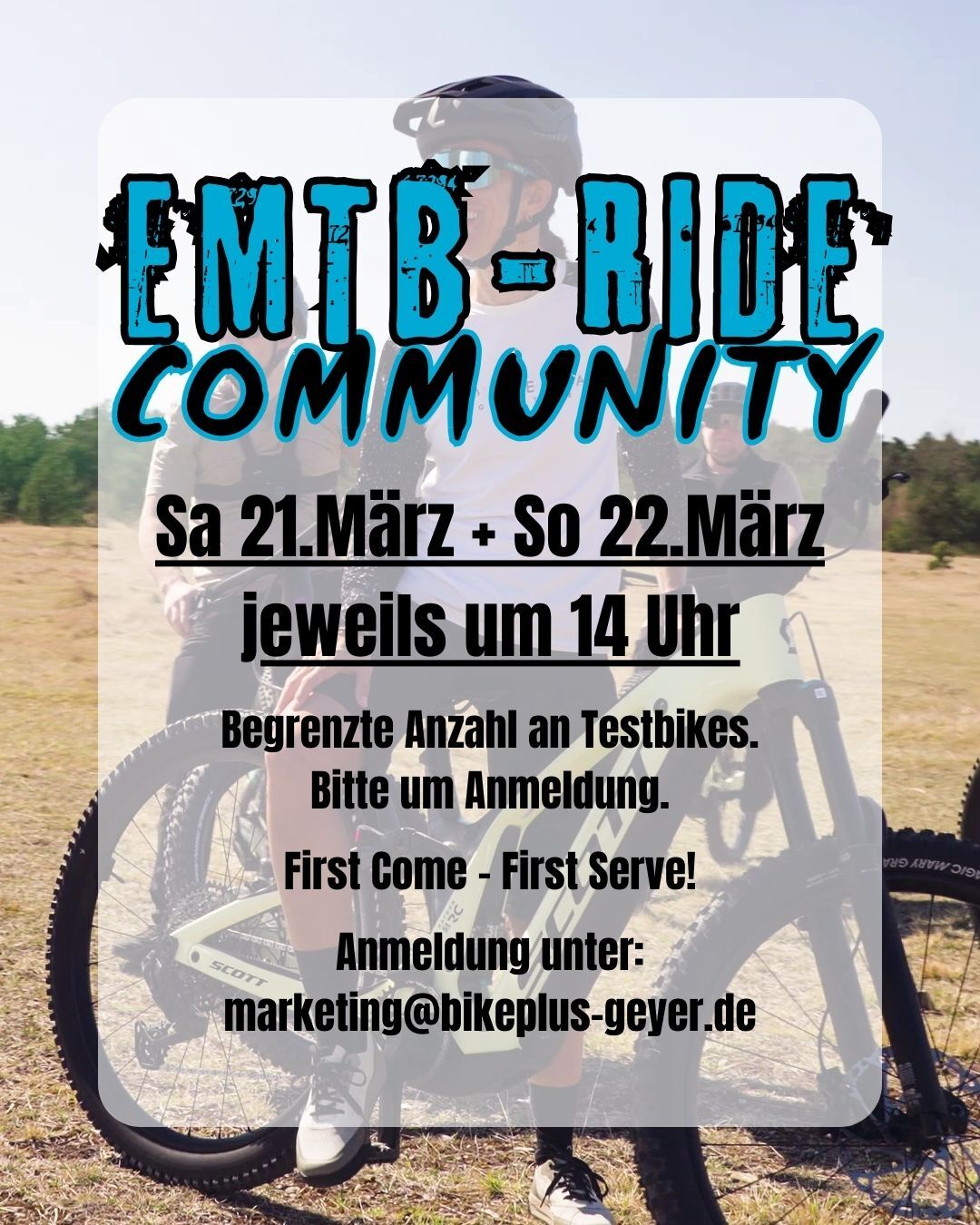 ⚠️ Wichtig: First Come – First Serve! Sichert euch euren Platz und meldet euch unbedingt vorher an unter: marketing@bikeplus-geyer.de