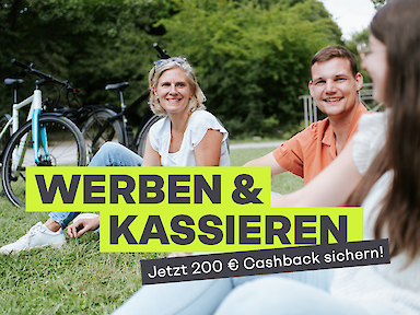Das Beste: Die „Werben & Kassieren“-Aktion (bis 31.03.) Schnapp dir einen Kollegen und sichert euch zusammen 200 € Cashback (jeweils 100 € für dich und deinen Buddy)!