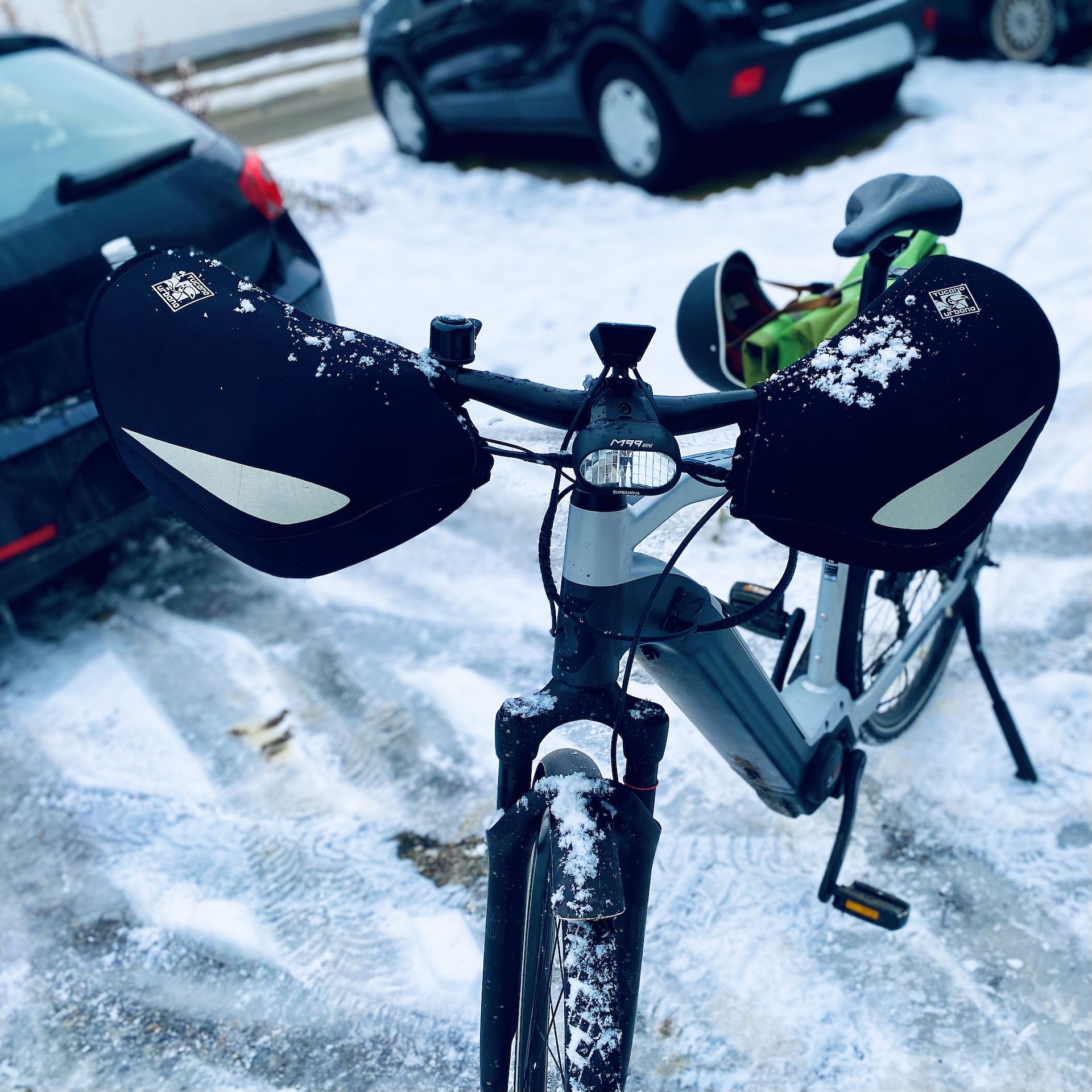 By the way: Auf Bild 2 sieht man Neopren-Überzieher am Lenker. Diese halten die Hände auch an den kältesten Tagen warm und windfest.