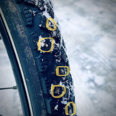 Um im Winter bei Schnee und Glatteis gut fahren zu können ist auch bei Fahrrädern und eBikes eine Winterbereifung ein notwendiger Sicherheitsfaktor: Reifen mit Spikes.