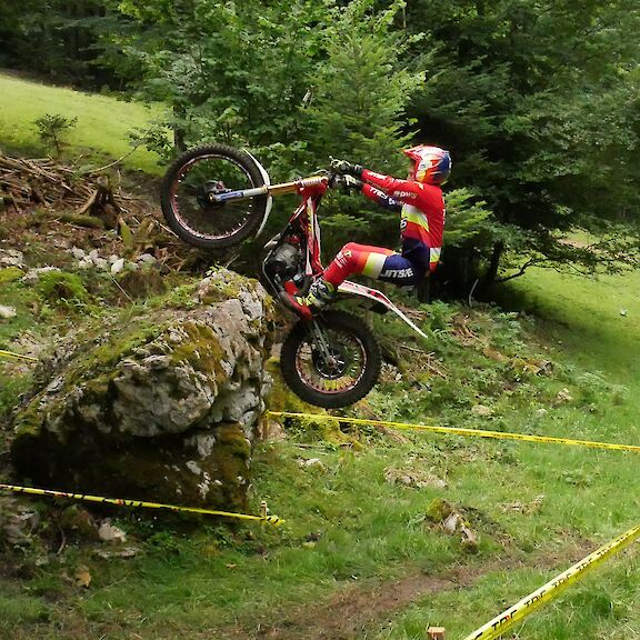 Am 15.08. fand ein Lauf zur Schweizer Meisterschaft in Roches statt. Da wir gerade auf dem Weg Richtung Andorra sind, hat es sich angeboten einen Zwischenstopp in Roches zu machen, da es fast direkt auf dem Weg liegt. Außerdem war es auch eine gute Vorbereitung für die WM in Andorra, denn das Trial in Roches liegt um die 1200 Meter hoch, ebenfalls wie Andorra, welches sogar noch etwas höher geht. Wir konnten also schon mal erste Eindrücke sammeln, wie sich das Motorrad in der Höhe verhält und was wir im Blick auf die WM noch verändern müssen.